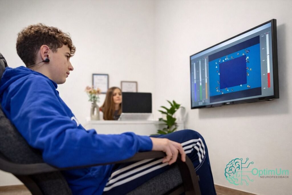 Neurofeedback je neinvazivna, znanstveno utemeljena metoda treniranja mozga koja koristi naprednu tehnologiju za mjerenje moždanih valova (EEG) i pruža osobi povratnu informaciju o aktivnosti mozga u stvarnom vremenu.